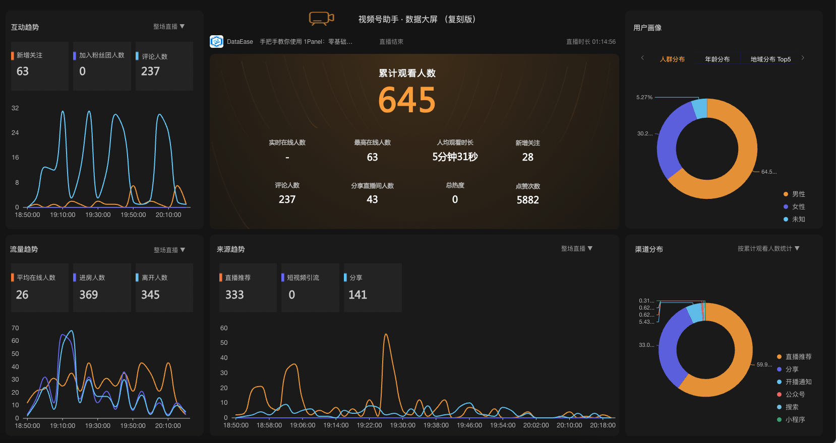 视频号助手直播数据大屏