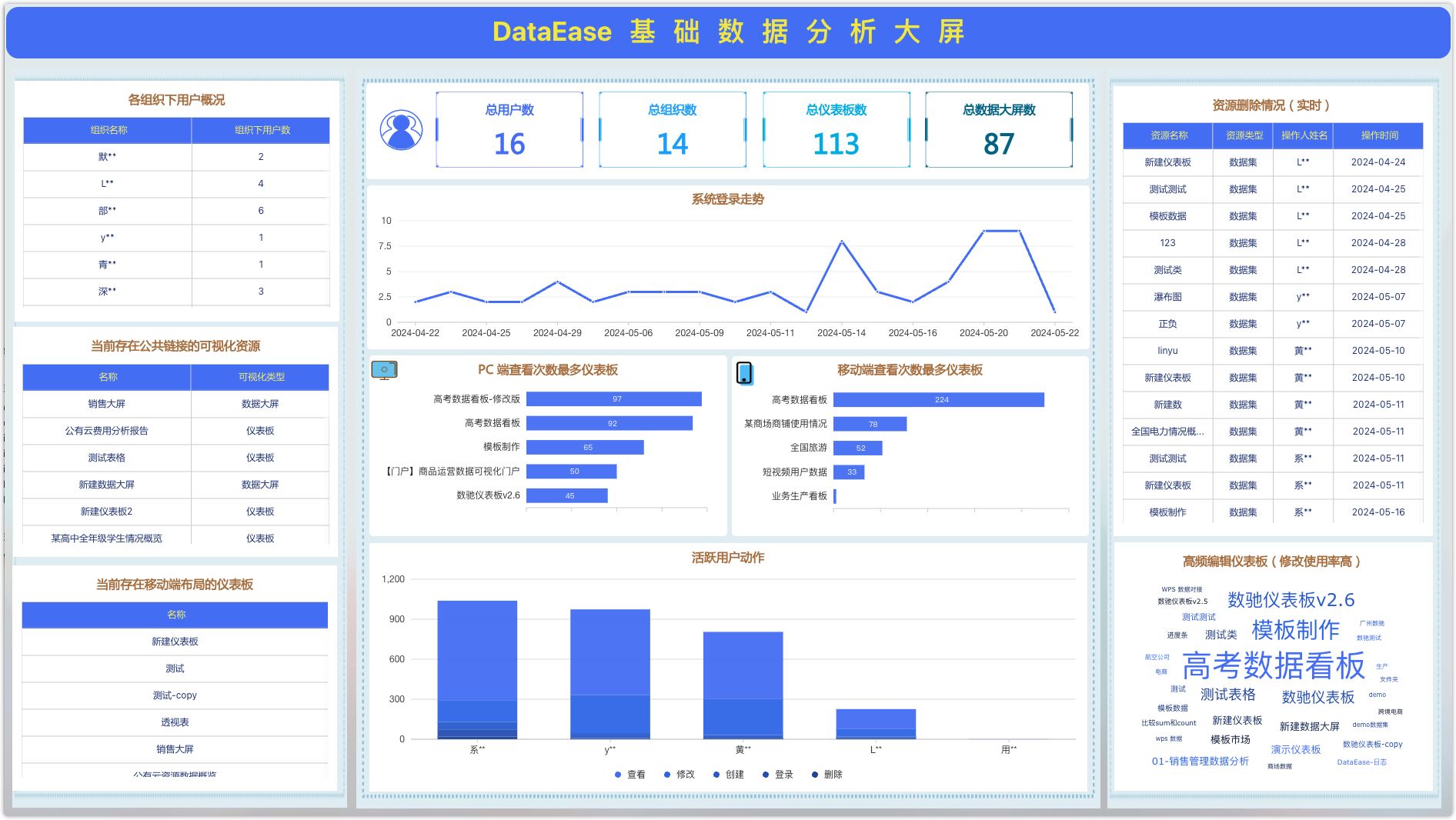 DataEase 基础数据分析大屏(样式模板)